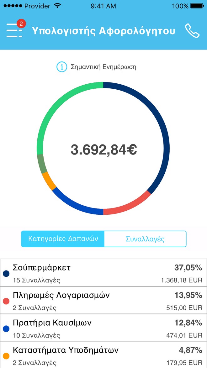 Η Eurobank σχεδίασε μια νέα πρωτοποριακή υπηρεσία υπολογισμού του αφορολόγητου, διαθέσιμη στους πελάτες της μέσω του Eurobank Mobile App και του e-Banking, με την οποία τους παρέχει άμεση και εύκολη ενημέρωση για το χτίσιμο του αφορολόγητου με βάση τις δαπάνες τους.
