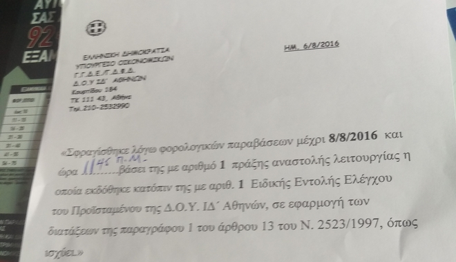 Υπενθυμίζεται, ότι το Σάββατο, είχαμε και επισήμως το πρώτο λουκέτο για φοροδιαφυγή, στην εταιρεία CAVA PANAS στα Άνω Πατήσια Αττικής.