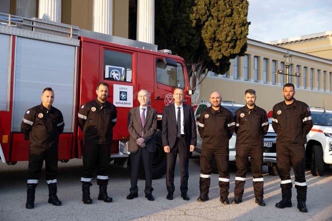 Παράδοση 6 πυροσβεστικών οχημάτων από την Alpha Bank σε Συλλόγους Εθελοντών Δασοπυροσβεστών σε Εύβοια, Πελοπόννησο και Αττική
