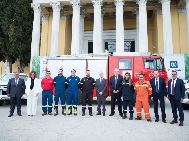 Σε ειδική εκδήλωση που έλαβε χώρα στον προαύλιο χώρο του Ζαππείου Μεγάρου, παρουσία του Υπουργού Κλιματικής Κρίσης και Πολιτικής Προστασίας κ. Χρήστου Στυλιανίδη, ο Πρόεδρος του Διοικητικού Συμβουλίου της Alpha Bank κ. Βασίλειος Ράπανος παρέδωσε 6 πυροσβεστικά οχήματα, ενισχύοντας τον στόλο οχημάτων των Συλλόγων Εθελοντικών Δυνάμεων Δασοπροστασίας & Διάσωσης Προκοπίου και Καρύστου Ευβοίας, του Εθελοντικού Συλλόγου Πυροπροστασίας Δασών Λουτρακίου – Περαχώρας, της Ομάδας Αντιμετώπισης Καταστροφών 4×4 Μεσσηνίας, των Εθελοντικών Δυνάμεων Δασοπυρόσβεσης & Διάσωσης / Κλιμάκιο Ροδόπολης Αττικής και της Εθελοντικής Ομάδας Καπανδριτίου Πολυδενδρίου Αττικής.