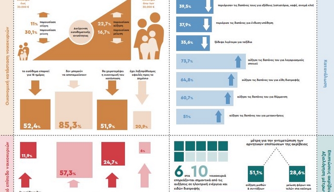 Μείωση εισοδήματος είχε κατά το 2022 το 28% των ελληνικών νοικοκυριών, ενώ 1 στα 2 νοικοκυριά εκτιμούν ότι η οικονομική τους κατάσταση θα επιδεινωθεί το 2023.