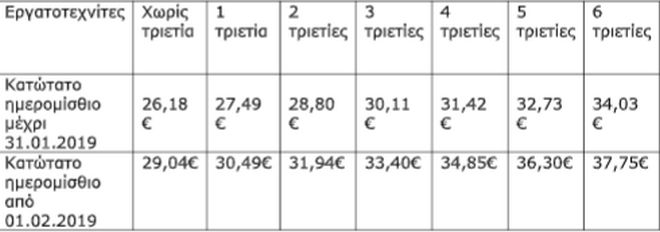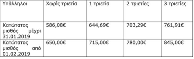 Με βάση την αύξηση του κατώτατου μισθού αναπροσαρμόζονται και οι διαμορφωμένες τριετίες ως εξής: