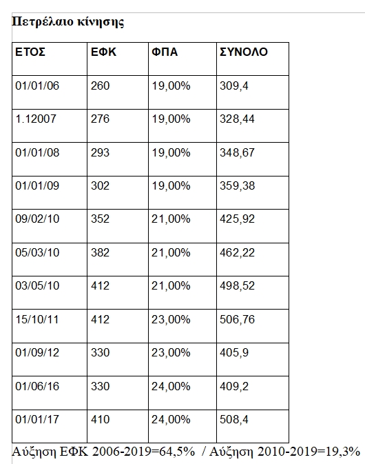 Οι υψηλοί φόροι αποτελούν πρόκληση μεγάλου ρίσκου για την φοροδιαφυγή και την λαθρεμπορία που εξακολουθούν να πλήττουν τους νόμιμους βενζινοπώλες.” Επίσης, παραθέτοντας συγκεκριμένους πίνακες για την πορεία των τιμών, επισημαίνουν ότι “είναι καιρός να αναθεωρηθούν όλοι οι δείκτες των ΕΦΚ στα καύσιμα. Η Ελλάδα έχει σήμερα από τις ακριβότερες τιμές στις ανεπτυγμένες χώρες του κόσμου και στην ΕΕ των 28.