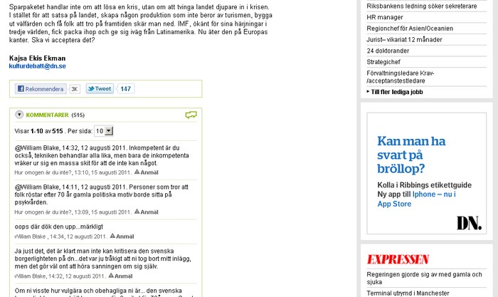 Το αποτέλεσμα ήταν να γράψει το άρθρο με τίτλο ” Όταν το ευρω-κοστούμι δεν ταιριάζει” (08/08/11). Το News 247 αναδημοσίευσε το άρθρο, προσδίδοντας στο σουηδικό δημοσίευμα τεραστια δυναμική και μία άνευ προηγουμένου δημοφιλία στα social media ( Δείτε εδώ τα σχόλια των Ελλήνων αναγνωστών )