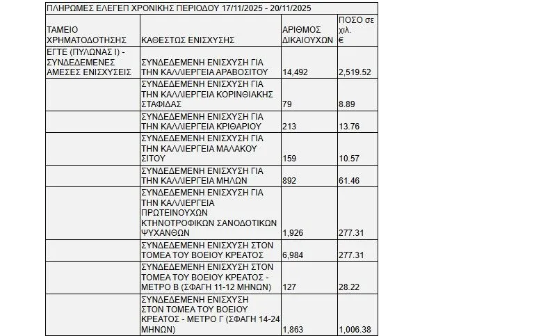 Στην πληρωμή και νέων συμπληρωματικών συνδεδεμένων ενισχύσεων (αιτήσεις του 2024) σε 82.870 αγρότες προχώρησε ο ΟΠΕΚΕΠΕ, καταβάλλοντας συνολικά 46 εκατομμύρια ευρώ στους τραπεζικούς λογαριασμούς των δικαιούχων.