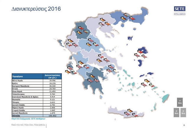 Η παρούσα μελέτη αναλύει τα στοιχεία του 2016 περαιτέρω σε επίπεδο Περιφερειών, προκειμένου να αποκτήσουμε μια ευκρινέστερη εικόνα για τις προτιμήσεις των διαφόρων αγορών μας, του χρόνου διαμονής τους και των δαπανών τους, καθώς και τους βασικούς δείκτες διαμονής και δαπάνης από τις αγορές αυτές.