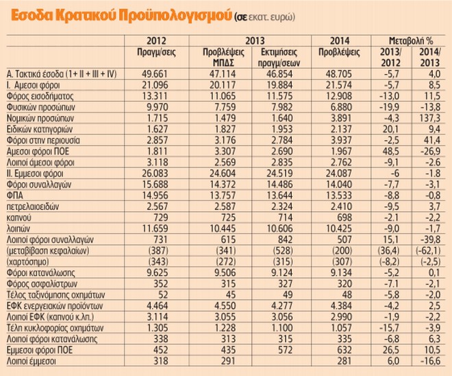 Πρόσθετοι φόροι 2,3 δισ. ευρώ στον Προϋπολογισμό του 2014