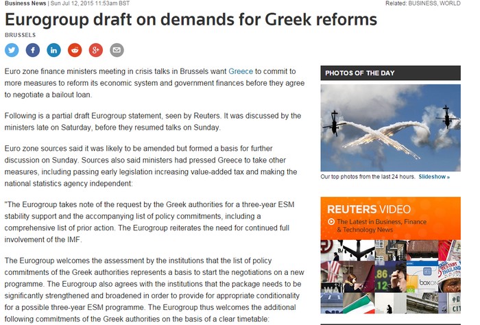 Το draft προσχέδιο του Eurogroup δόθηκε στη δημοσιότητα από το Reuters. Ποια τα επιπλέον μέτρα που ζητούν οι πιστωτές (Pic)