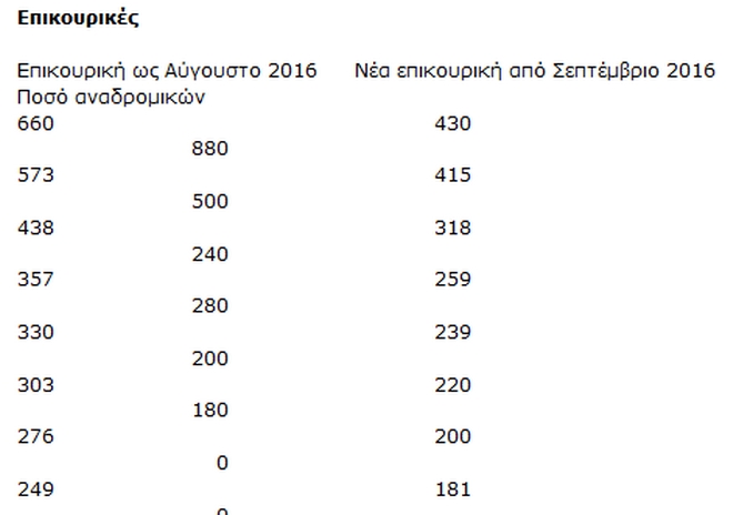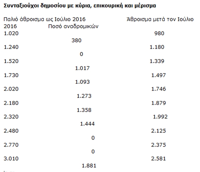 Αναλυτικοί πίνακες με τα ποσά ανάλογα με τις κρατήσεις
