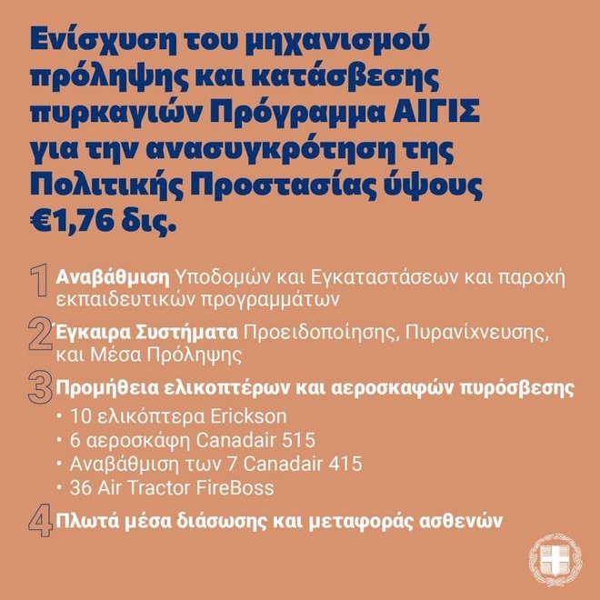 Μετά την υπογραφή στις 28 Ιανουαρίου 2021 της σχετικής σύμβασης χρηματοδότησης από την Ευρωπαϊκή Τράπεζα Επενδύσεων, εγκρίθηκε τον Ιούνιο εφέτος το μεγαλύτερο διαχρονικά πρόγραμμα αναβάθμισης της πολιτικής προστασίας, με την ονομασία «ΑΙΓΙΣ».