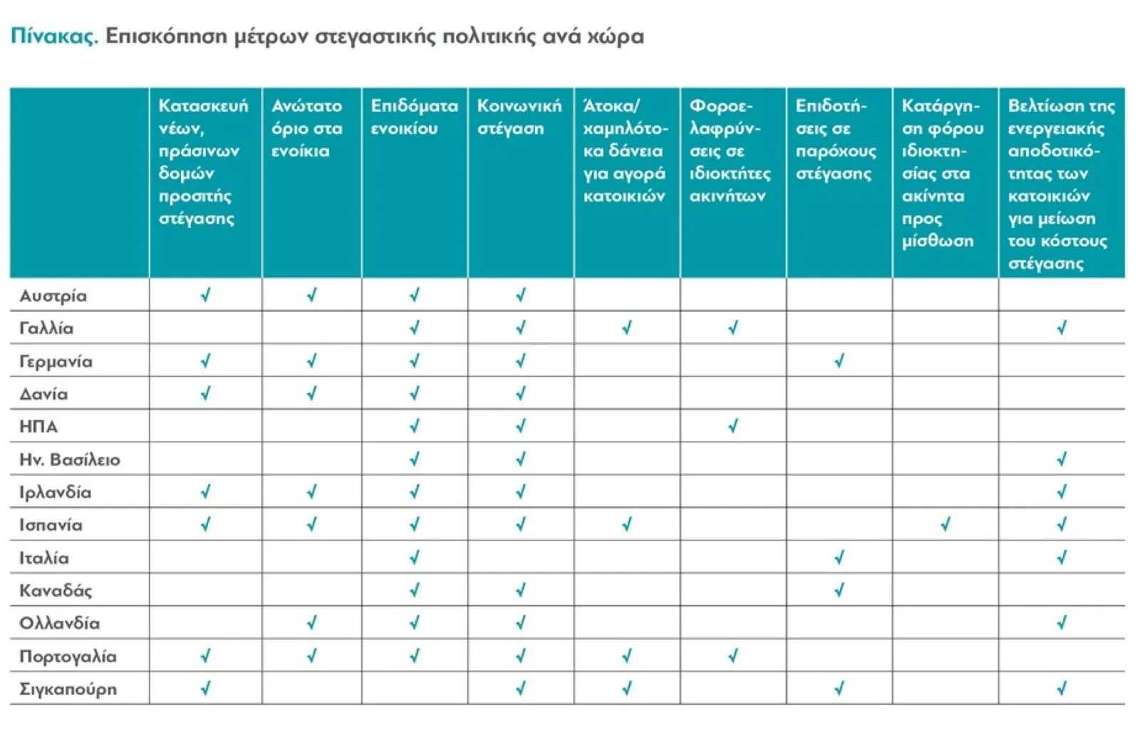 Η μελέτη αφιερώνει επίσης ένα εκτενές κεφάλαιο όπου διερευνά το πώς άλλες χώρες, κυρίως ευρωπαϊκές, διαχειρίζονται αντίστοιχα προβλήματα πρόσβασης σε προσιτή στέγη για διάφορες ομάδες του πληθυσμού τους.