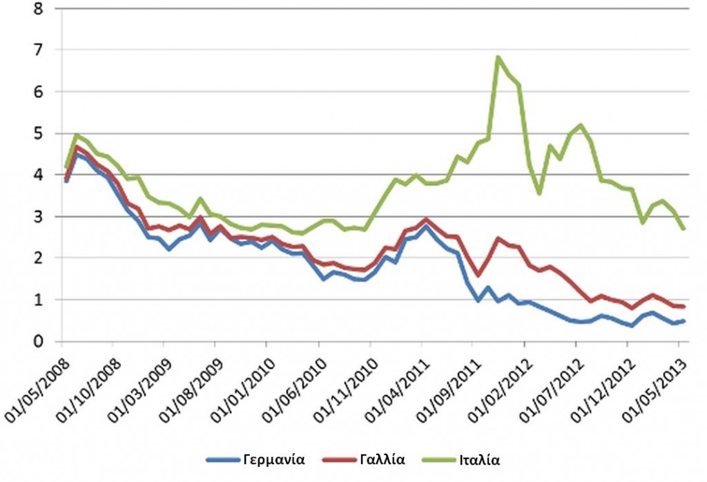 **Πηγή: Boysen-Hogrefe Jens (2013) “Low bond yields have saved the German government €80 billion in interest since 20009”, London School of Economics.