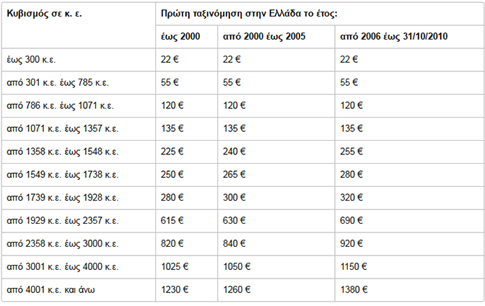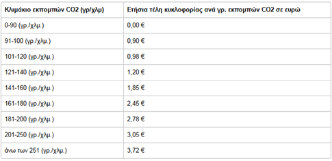 -Το φόρο πολυτελούς διαβίωσης που πληρώνουν οι κάτοχοι Ι.Χ. κυβισμού 1.929 κυβικών εκατοστών και άνω. Ο φόρος πολυτελούς διαβίωσης ξεκινά από τα 287 ευρώ για ΙΧ κυβισμού από 1.929 κ. εκ. και παλαιότητας από 5 μέχρι 10 έτη, ανέρχεται σε 1.780 ευρώ για ΙΧ 3.000 κυβικών εκατοστών και παλαιότητας μέχρι 5 ετών και φθάνει τα 3.820 ευρώ για ΙΧ 4.700 κ.εκ. και παλαιότητας μέχρι 5 ετών.