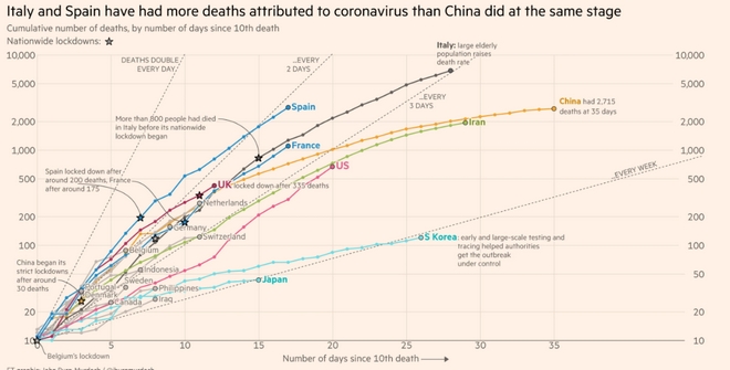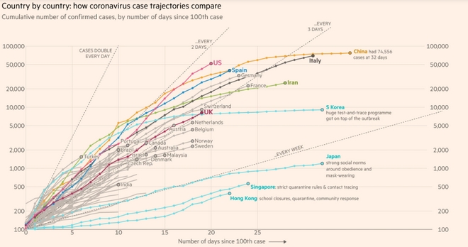 Οι Financial Times χαρτογραφούν επίσης τον ιό και τον οικονομικό του αντίκτυπο, καθώς εξαπλώνεται.