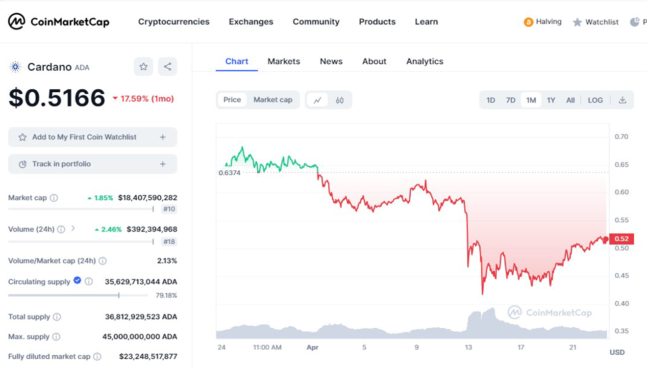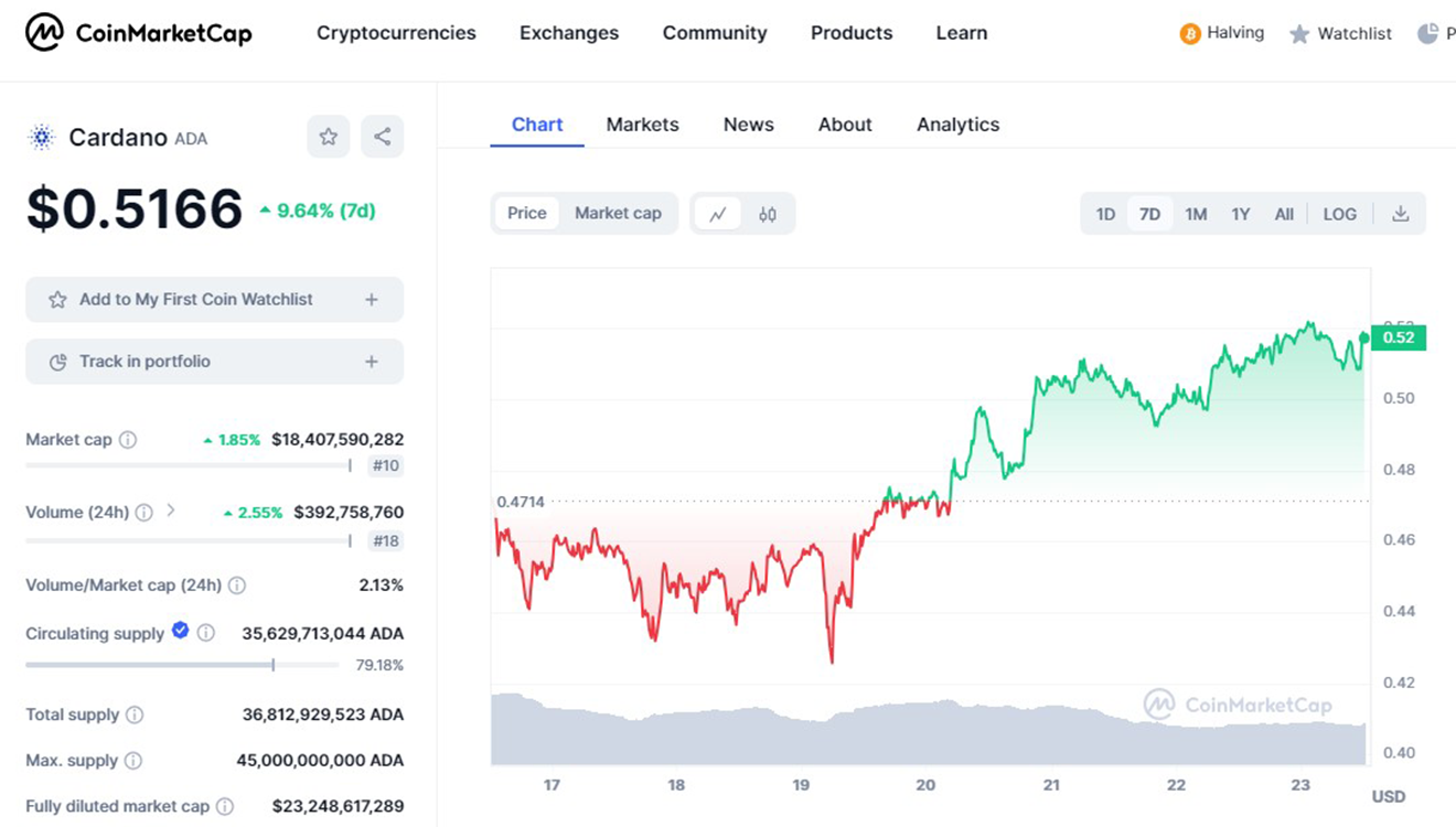 Ωστόσο, σύμφωνα με διάφορες ακόμη αναλύσεις από κορυφαίους εμπειρογνώμονες του κλάδου, οι περισσότεροι δείκτες του Cardano δείχνουν ανοδικοί, κάτι που θα μπορούσε να οδηγήσει σε μια εξαιρετική πορεία το επερχόμενο χρονικό διάστημα. Φυσικά, αν και αρκετοί θερμούς υποστηρικτές κάνουν λόγο για επίτευξη του ενός δολαρίου του 2024, κάτι τέτοιο εξαρτάται από διάφορους παράγοντες και από το συνολικό κλίμα της αγοράς.