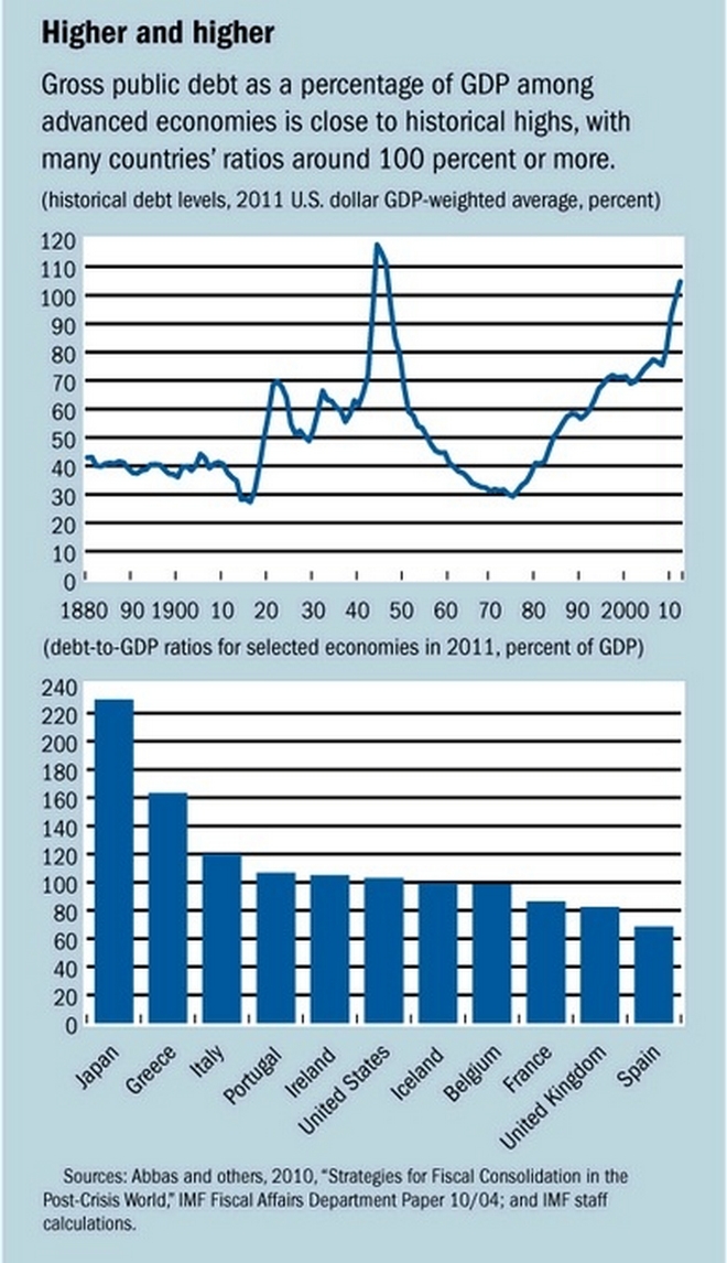 Το μέγεθος του δημόσιου χρέους σε ποσοστό του ΑΕΠ για τις πιο αναπτυγμένες οικονομίες κοντά στα ιστορικά τους ύψη
