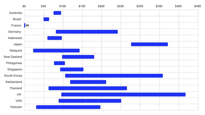 Από τις 15 αγορές όπου υπάρχει κόστος για δοκιμές PCR, για κάθε άτομο το μέσο ελάχιστο κόστος είναι 90 δολάρια και το μέσο μέγιστο κόστος 208 δολάρια.
