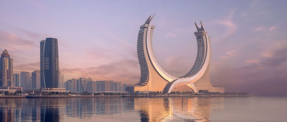 Οι άκρως εντυπωσιακοί τοξωτοί πύργοι Katara, με την ξεχωριστή αρχιτεκτονική κατασκευή τους θα στεγάσουν δύο νέα υπερπολυτελή ξενοδοχεία, το Fairmont που θα έχει 362 δωμάτια και το Raffles που θα έχει 132 σουίτες.