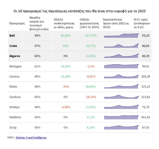 Οι εξαιρετικές επιδόσεις της Κρήτης στον τουρισμό το 2022 τής χάρισαν μια θέση στους κορυφαίους προορισμούς για φέτος, σύμφωνα με έρευνα της Mabrian Technologies.