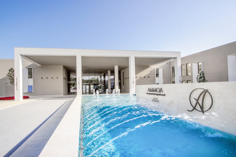 Η μεγάλη εξωτερική θερμαινόμενη πισίνα του ΑΜΜΟΑ, έχει σχήμα οβάλ, ταιριάζοντας απόλυτα με το φυσικό κόλπο που την αγκαλιάζει. Τα δωμάτια, οι σουίτες και οι βίλες ακολουθούν στο εσωτερικό τους την λογική της απλότητας, με ποιοτικά υλικά, μεγάλη άνεση στους χώρους και πολλές λεπτομέρειες για μια ευχάριστη διαμονή, ενώ πολλές διαθέτουν ιδιωτική θερμαινόμενη πισίνα. Το SPA του ΑΜΜΟΑ είναι μια εξαιρετική εγκατάσταση, ευεξίας και ομορφιάς. Οι πολυτελείς χώροι του Spa & Fitness Center περιλαμβάνουν θερμαινόμενη πισίνα, τζακούζι, καθώς και αίθουσα για σάουνα. Οι θεραπευτές του, θα αναλάβουν να σας αναζωογονήσουν ολοκληρωτικά με χαλαρωτικά μασάζ και θεραπείες προσώπου και σώματος. Τα παιδιά θα βρουν στο ΑΜΜΟΑ το δικό τους χρωματιστό παράδεισο, μέσα από το κλειστό Kids Club με τις πολλές δημιουργικές δραστηριότητες, τις ειδικές εξωτερικές πισίνες, κ.α.