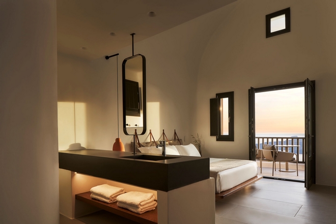 Όλα τα δωμάτια είναι διακοσμημένα με γήινες αποχρώσεις και κτισμένα με σεβασμό στην ιδιαίτερη Κυκλαδίτικη αρχιτεκτονική, ενώ προσφέρουν θέα στο ηφαίστειο της Σαντορίνης.