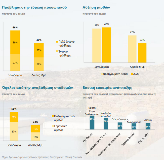 Μελέτη της ΕΤΕ δείχνει την υπεροχή των μικρομεσαίων ελληνικών ξενοδοχείων έναντι των λοιπών του επιχειρηματικού τομέα, αλλά και τις σημαντικές ελλείψεις προσωπικού παρά τις προσλήψεις.
