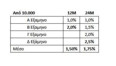 Με επιτόκιο στο 1,7% για ποσά από €200.000 και άνω, 1,5% για ποσά από €20.000 μέχρι €200.000, και 1% για ποσά μέχρι €20.000