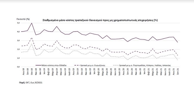 Στο ιστορικά χαμηλό ποσοστό του 2,8% έπεσε τον Σεπτέμβριο το κόστος δανεισμού των επιχειρήσεων. Ωστόσο η καθαρή ροή χρηματοδοτήσεων προς τις επιχειρήσεις είναι αρνητική ενώ χαμηλή παραμένει και η ζήτηση.