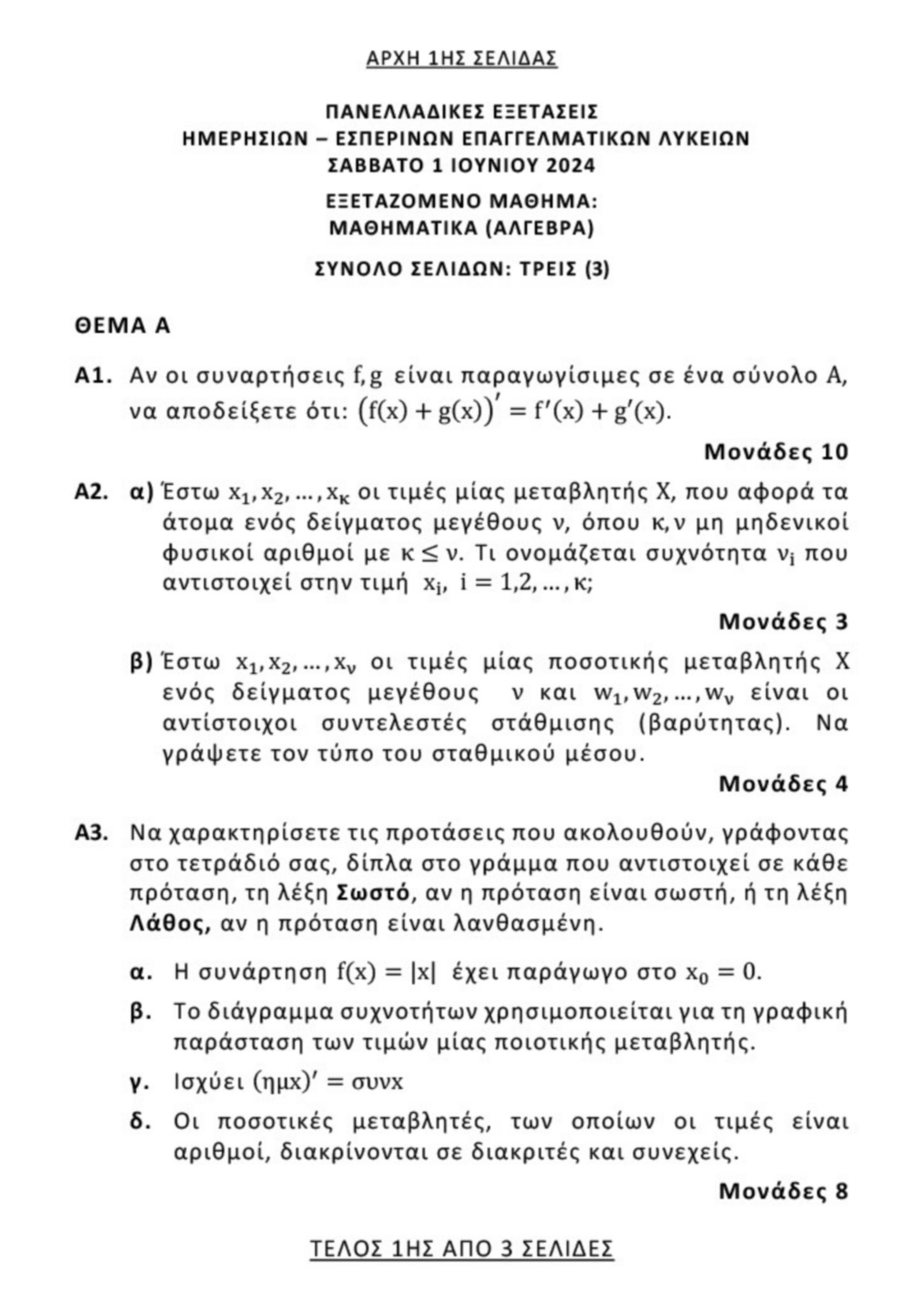 Πανελλήνιες 2024: Τα θέματα που έπεσαν στα Μαθηματικά για τους μαθητές του ΕΠΑΛ