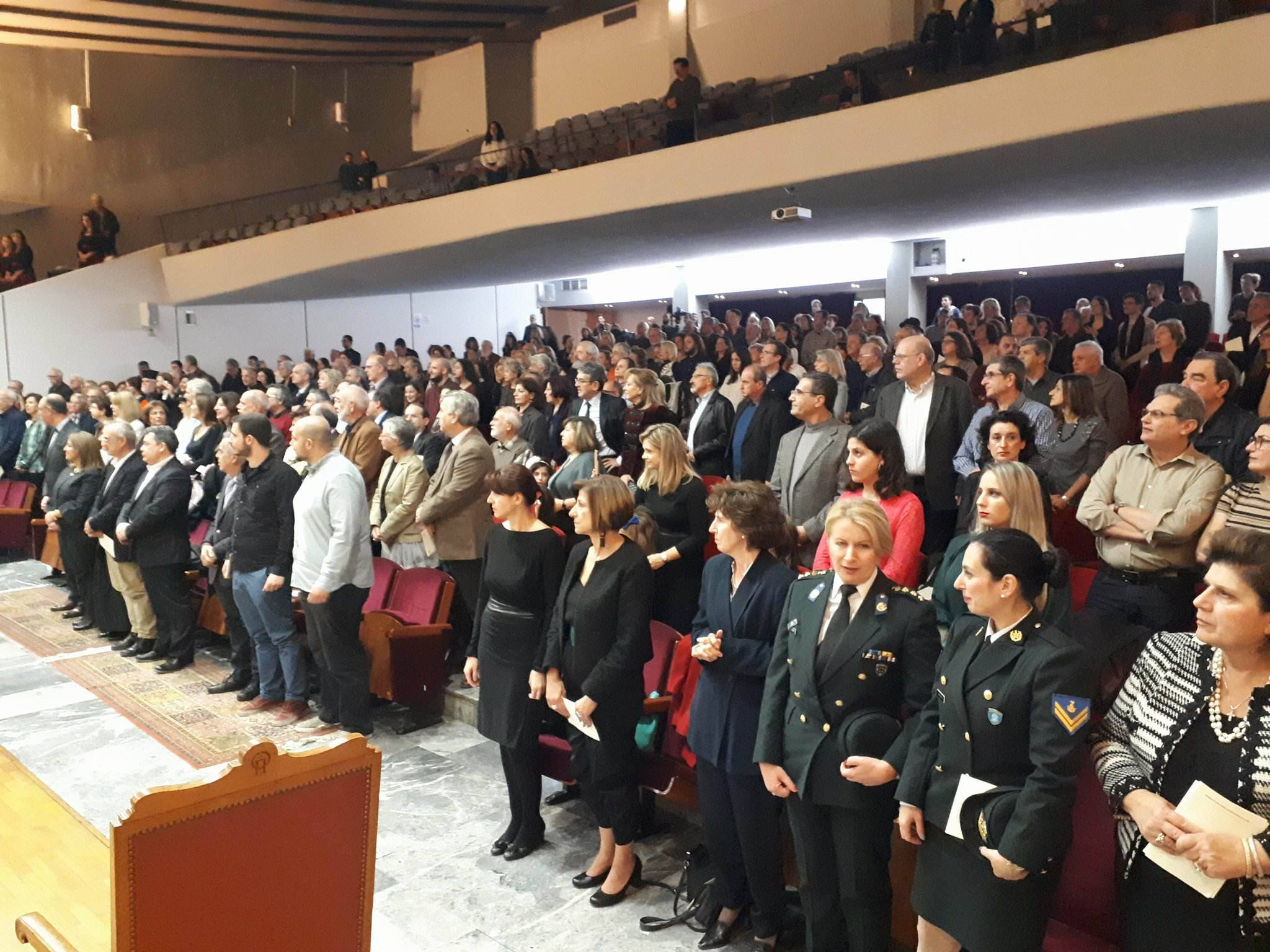 Ο πρόεδρος του Τμήματος Φιλολογίας του ΑΠΘ, Καθηγητή Αιμίλιος Δ. Μαυρουδήςέντυσε τον τιμώμενο με την τήβεννο και του απέδωσε τις μεμβράνες του διασήμου.