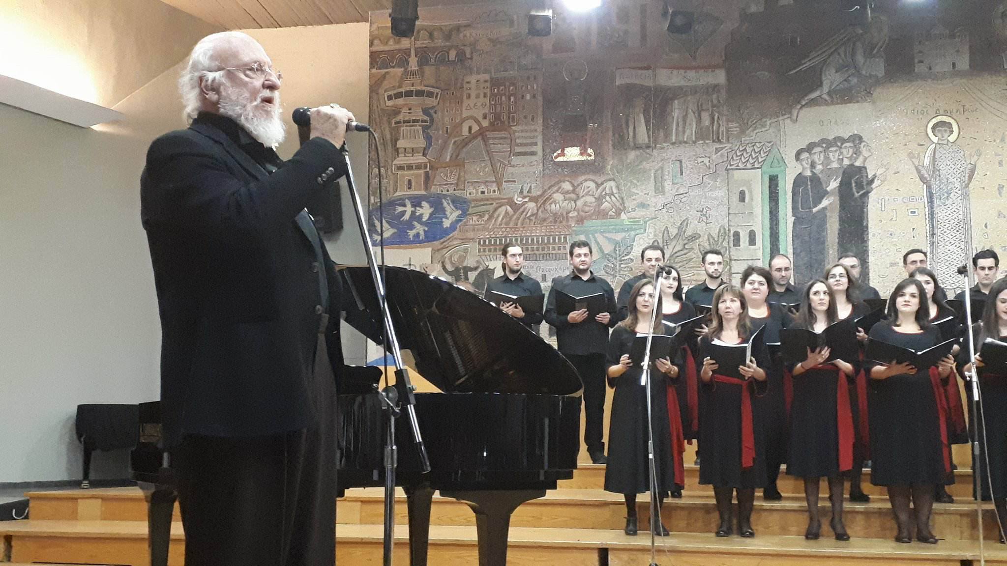 Ο καταξιωμένος τραγουδοποιός και συνθέτης ερμήνευσε τραγούδια του με τη συνοδεία της Χορωδίας του Αγίου Ιωάννου Χρυσοστόμου, σε διδασκαλία Χρυσόστομου Σταμούλη εντυπωσιάζοντας όσους βρέθηκαν στην εκδήλωση, ενω στο πιάνο ήταν ο Σπύρος Ρασσιάς.