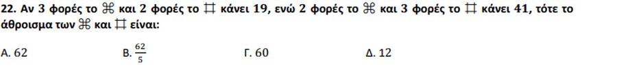 Αλλα η δυσκολία στο θέμα 25 οφείλεται κυρίως στην κακή εκφώνηση, δεν μπορεί να ισχυριστεί κανείς το ίδιο για το θέμα 22.