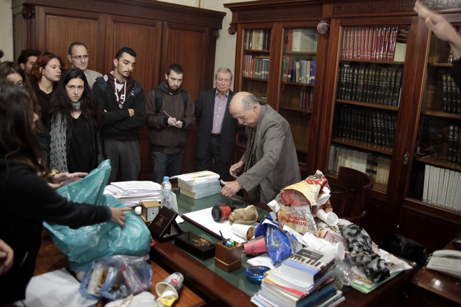 Φοιτητές διαμαρτυρόμενοι για την καθαριότητα στο πανεπιστήμιο Αθηνών άδειασαν σακούλες με σκουπίδια στο γραφείο του αντιπρύτανη (pics & vid)