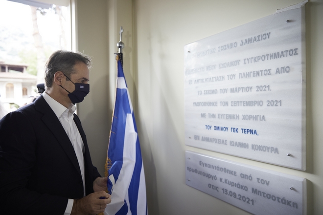 “Και μιας και μιλήσατε για τον σεισμό, ο οποίος χτύπησε τη Λάρισα: Όπως θυμάστε, ένα δημόσιο κτίριο γκρεμίστηκε και είναι το σχολείο στο Δαμάσι. Αυτό είναι το καινούργιο σχολείο σε τέσσερις μήνες (σ.σ. δείχνοντας σχετική φωτογραφία). Ελπίζω να μπορέσω να βρεθώ εκεί στον αγιασμό”, σημείωσε ο κ. Μητσοτάκης, κάτι που πραγματοποίησε κατά την έναρξη της σχολικής χρονιάς.
