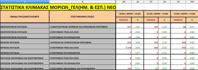 Ειδικότερα, 758 είναι συνολικά οι υποψήφιοι που συγκέντρωσαν πάνω από 19.000 μόρια, με την πλειονότητα αυτών (462) να είναι στο επιστημονικό πεδίο των επιστημών Υγείας και Ζωής της ομάδας προσανατολισμού των Θετικών Σπουδών. Πρακτικά, αυτό μπορεί να «μεταφραστεί» σε άνοδο των βάσεων στις ιατρικές σχολές, κάτι που θα «συμπαρασύρει» και τις σχολές Φαρμακευτικής, Κτηνιατρικής και Βιολογίας.