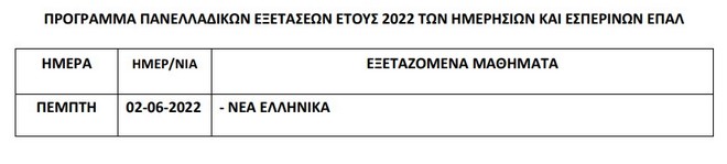 Πανελλήνιες 2022 – Το πρόγραμμα εξετάσεων των ΕΠΑΛ: