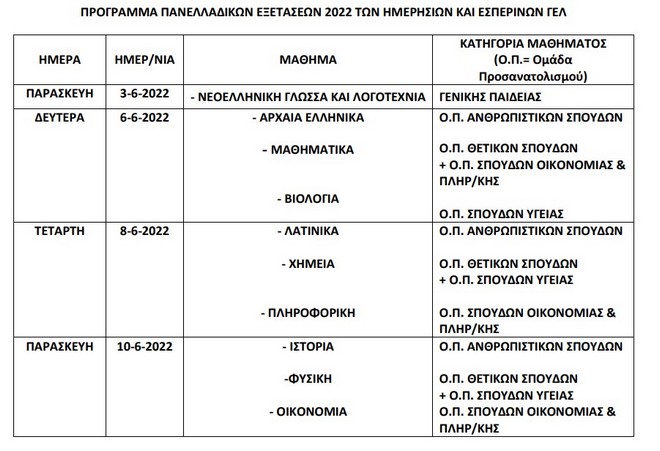 Πανελλήνιες 2022 – Το πρόγραμμα εξετάσεων των ΓΕΛ: