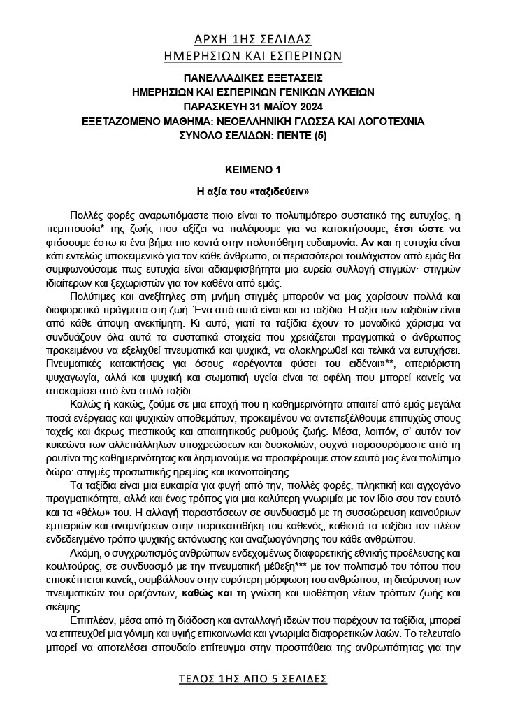Πανελλήνιες 2024: Οι απαντήσεις των θεμάτων σε Νεοελληνική Γλώσσα και Λογοτεχνία