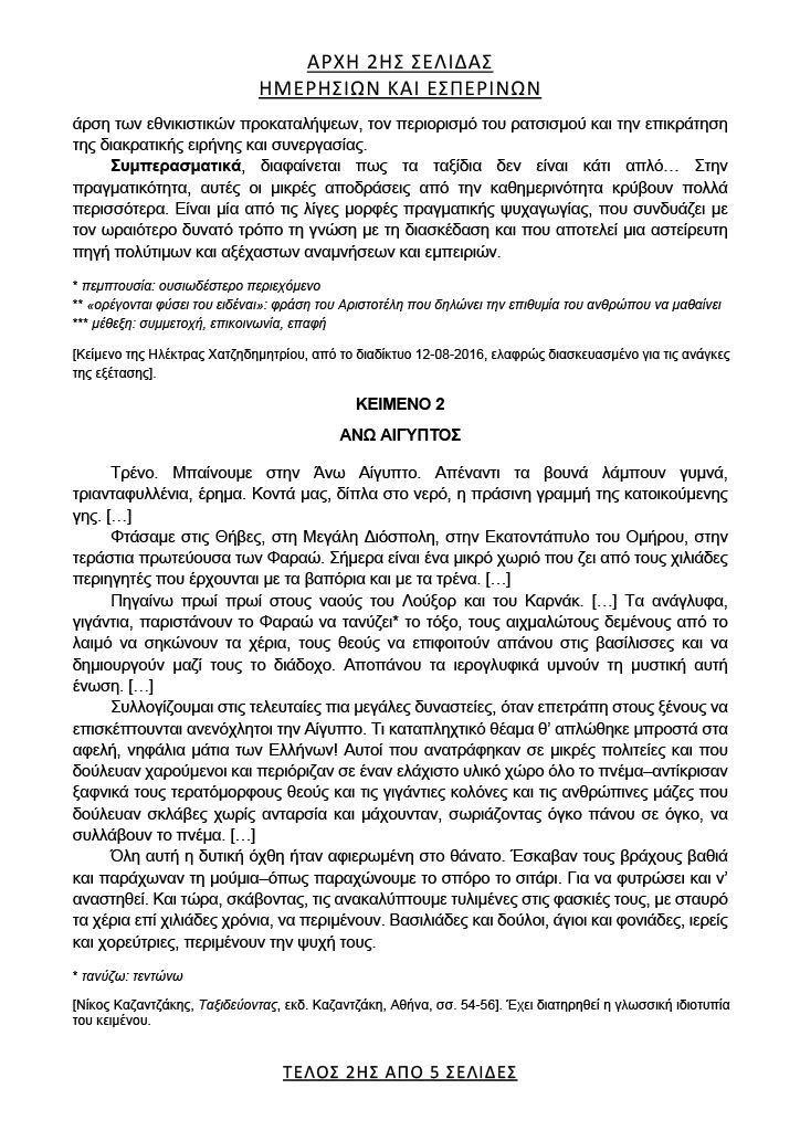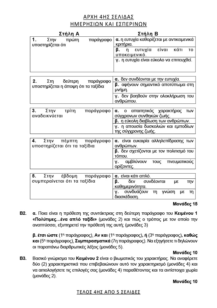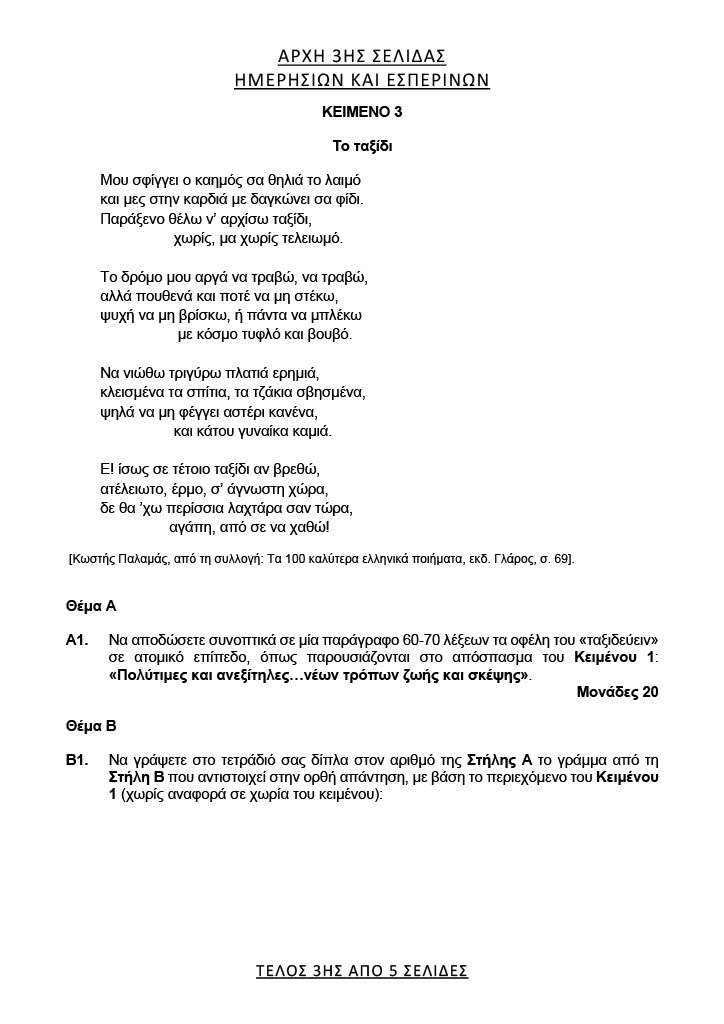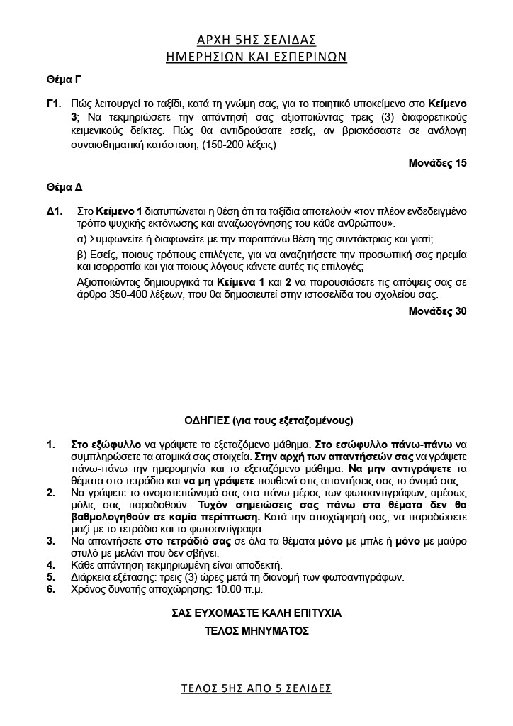 Οι απαντήσεις των θεμάτων σε Νεοελληνική Γλώσσα και Λογοτεχνία