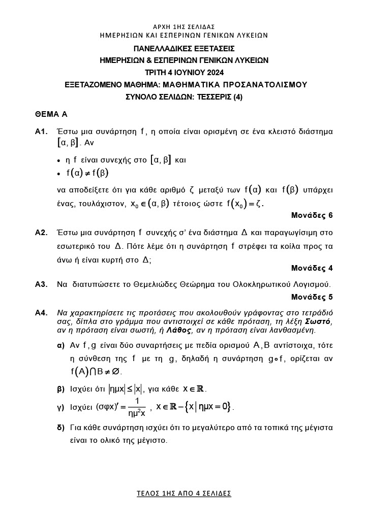 Πανελλήνιες 2024: Τα θέματα στα Μαθηματικά για τους υποψηφίους των ΓΕΛ