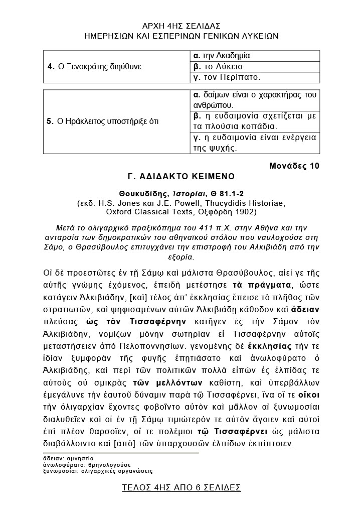 Τα θέματα στα “Αρχαία Ελληνικά”: