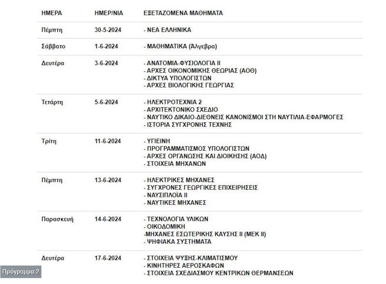 Η εξεταστέα ύλη και τα θέματα των εξετάσεων είναι κοινά για όλους τους υποψηφίους ημερησίων και εσπερινών ΕΠΑΛ.