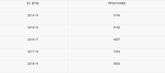 Οι προσλήψεις αναπληρωτών μέχρι σήμερα το σχολικό έτος 2018-19 ξεπερνούν τις 9000! Οι ελαστικές μορφές εργασίας αυξάνονται συνεχώς στη Δημόσια εκπαίδευση! Το σχολικό έτος 2011/12 το ποσοστό των αναπληρωτών επί των μονίμων εκπαιδευτικών ήταν 8% το 2013/14 9%, το 2015/16 14,1%, το 2017/18 11,2% για να φτάσουμε σήμερα σχεδόν στο 12,5%! Σε σχέση με τη σχ. χρονιά 2014/15 η αύξηση προσλήψεων ανέρχεται σε 3839 εκπαιδευτικούς δηλαδή σε ποσοστό πάνω από 74%! Αναλυτικά οι προσλήψεις τα τελευταία χρόνια είναι οι ακόλουθες: