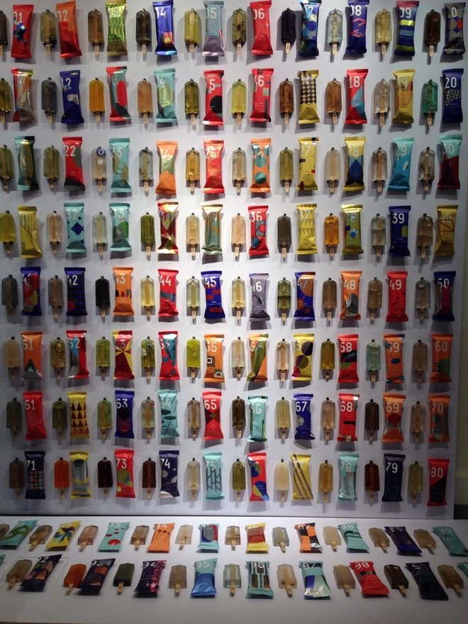 Αν κοιτάξει κανείς με προσοχή θα δει ότι τα εντυπωσιακά εμφανισιακά παγωτά περιέχουν πολλά σκουπίδια, όπως γόπες τσιγάρων, καπάκια μπουκαλιών, κομμάτια από πλαστικές σακούλες και φύκια βουτηγμένα στο πετρέλαιο κ.ά.