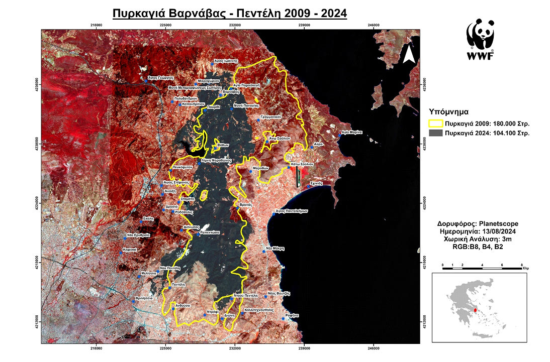 1981, 1992, 1995, 1998, 2009, 2024… Για ακόμα ένα καλοκαίρι η πολύπαθη βορειοανατολική Αττική μετράει τις πληγές της καθώς η φωτιά κινήθηκε σε γνώριμα μονοπάτια και έκαψε ό,τι βρήκε μπροστά της. Για πολλοστή φορά λοιπόν έκαψε ώριμα δάση (όσα είχαν απομείνει κυρίως στις βόρειες παρυφές του Πεντελικού και τον Μαραθώνα) αλλά κυρίως και σημαντικότερο, έκαψε φυσική αναγέννηση και αναδασωτικές προσπάθειες προηγούμενων ετών.
