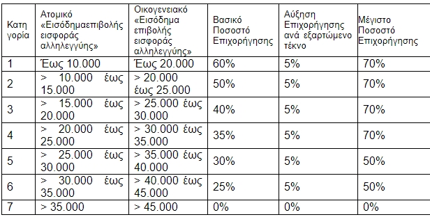 Εισοδηματικές κατηγορίες-Ποσοστά επιχορήγησης