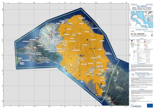 Δορυφορική εικόνα της καταστροφής από τη φωτιά στην Εύβοια Κοπέρνικος