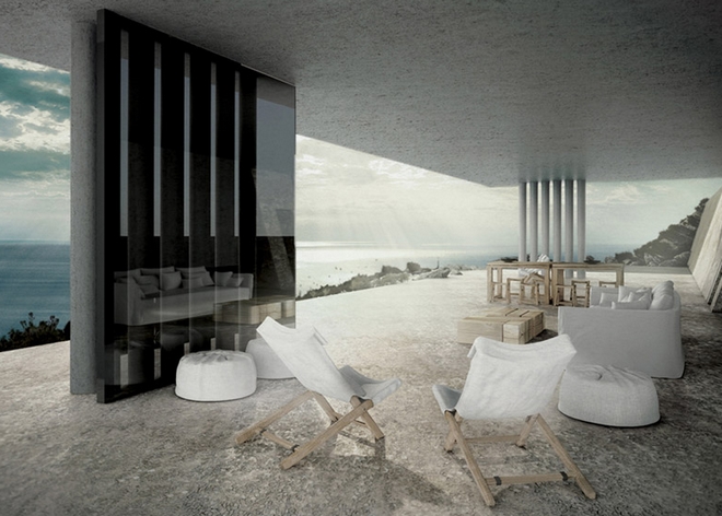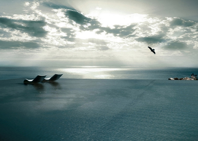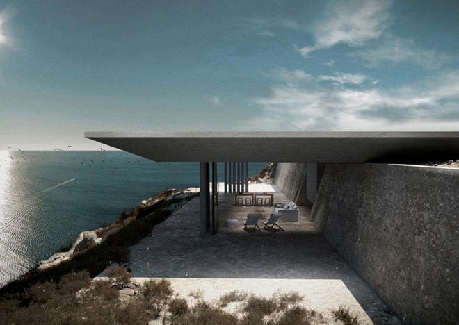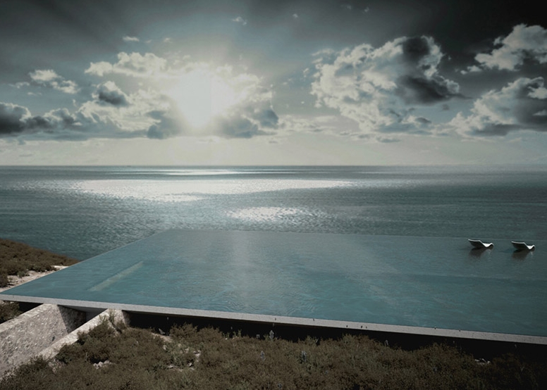 Στόχος του γραφείου ήταν να ενσωματωθεί το κτίριο στο τοπίο σαν να ήταν μέρος του. Το σύνολο του ζωτικού χώρου καλύπτεται από μια πισίνα χωρίς σκελετό που παράγει μια οφθαλμαπάτη (mirage) του νερού που εκτείνεται προς τον ορίζοντα. Από απόσταση ειδικά εάν προβληθούν από την πορεία της προσέγγισης, σε υψηλότερο έδαφος, το μόνο ορατό χαρακτηριστικό του σπιτιού είναι η πισίνα η οποία φαντάζει σαν προέκταση της θάλασσας. Το νερό κατά τη διάρκεια της ημέρας αντανακλά το περιβάλλον και κατά τη διάρκεια της νύχτας τον έναστρο νυχτερινό ουρανό.