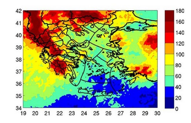 Η κεραυνική δραστηριότητα στην Ελλάδα συσχετίζεται με τις περιοχές που χαρακτηρίζονται από σύνθετη τοπογραφία όπως φανερώνει η μελέτη της γεωγραφικής κατανομής των ημερών καταιγίδων (ημέρα που εμφανίστηκε ένας τουλάχιστον κεραυνός πάνω από την Ελλάδα για την περίοδο 9 ετών από το 2005 ως το 2014).