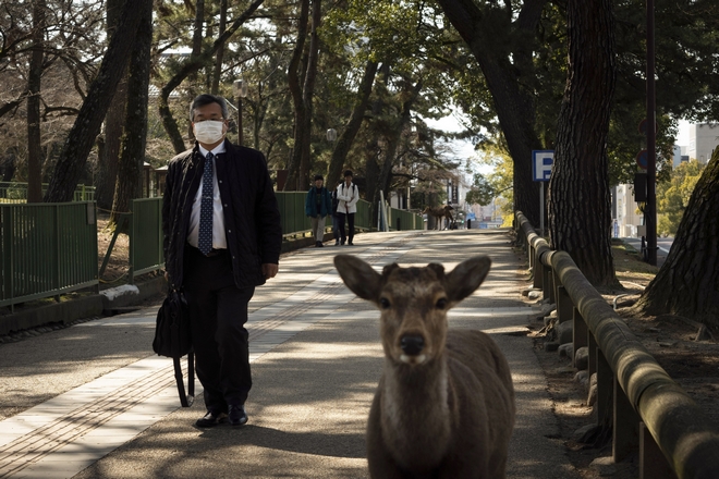Ελάφι στην Ιαπωνία περπατά δίπλα σε ανθρώπους. AP